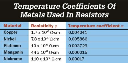 表1:電阻中所使用的金屬決定電阻的溫度系數。