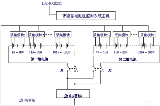 與電池巡檢儀不同,在這個(gè)系統(tǒng)增加了一個(gè)放電模塊,放電模塊能承受較大的沖擊電流,它接收監(jiān)控主機(jī)的放電命令,接通放電回路,電池通過負(fù)載放電,同時(shí)采集模塊將采集每節(jié)電池電壓的變化,在主機(jī)中得到了每節(jié)電池內(nèi)阻特性曲線。放電模塊也可作為長(zhǎng)時(shí)間放電負(fù)載,實(shí)現(xiàn)對(duì)電池容量的核對(duì)性測(cè)試及整組電池的活化處理。這個(gè)系統(tǒng)實(shí)現(xiàn)對(duì)蓄電池全方面的監(jiān)測(cè)和維護(hù)管理。