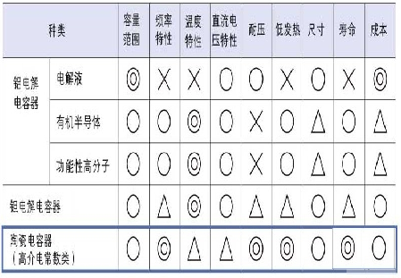 這里通過表1列出了片狀獨(dú)石陶瓷電容器、鋁電解電容、鉭電解電容器的相互比較結(jié)果。片狀獨(dú)石陶瓷電容器的優(yōu)點(diǎn)有兩個(gè)。