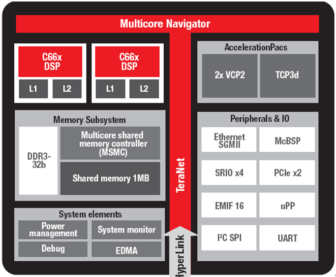 圖1:TMS320C6657/55 方框圖