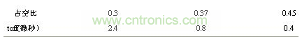 該電路具有以下優點:①電路結構簡單可靠,實現了隔離驅動。②只需單電源即可提供導通時正、關斷時負壓。③占空比固定時,通過合理的參數設計,此驅動電路也具有較快的開關速度。該電路存在的缺點:一是由于隔離變壓器副邊需要一個假負載防震蕩,故該電路損耗較大;二是當占空比變化時關斷速度變化加大。脈寬較窄時,由于是貯存的能量減少導致MOSFET柵極的關斷速度變慢。表1為不同占空比時關斷時間toff(驅動電壓從10伏下降到0伏的時間)內變化情況。