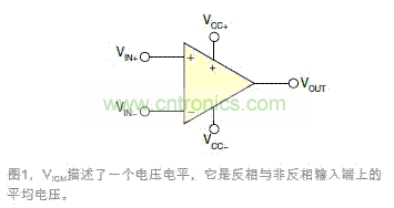 輸入共模電壓VICM是一位工程師在考慮運放輸入時的首要規(guī)格之一,但它可能帶來一些混淆。VICM描述了一個電壓電平,它是反相和非反相輸入端的平均電壓(圖1)。通常用下式表示: