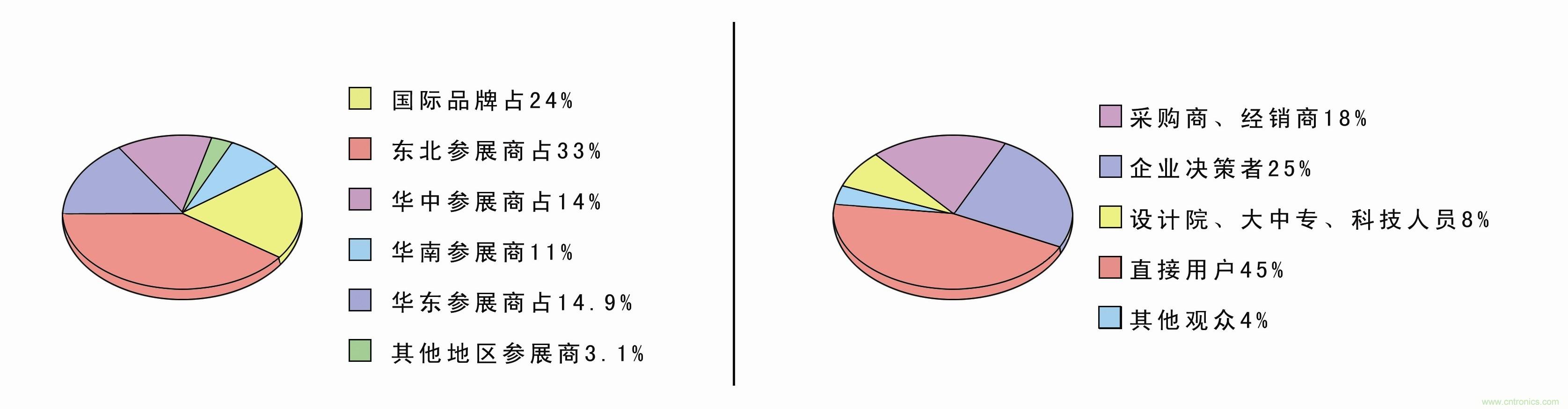 上屆展會于2012年5月16-18日在大連星海會展中心舉行,展會規模已達一萬多平方米,四百多個展位。世界知名的廠商:西門子、ABB、施耐德、三菱電機、奧托尼克斯、歐姆龍、LG、艾默生、寶帝、威圖、米思米、町洋機電、匯川等企業齊聚一堂,美國、日本、韓國等國外展團的大量參與,使展會更具吸引力;展會的觀眾主要來自東北、華北、華東、華中、西北、臺灣、香港及日本、韓國、俄羅斯等地,其主要為相關行業的決策人士、技術人員及采購負責人。本屆展會為切合您的需求,直接面向專業買家、進出口商、分銷商、代理商和直接用戶,為您締造更多的商機!此次展會有參展商三百多家,參觀商兩萬余人,其中各占比例如下: