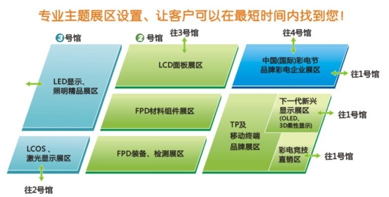 作為光電顯示行業(yè)的標(biāo)志性活動(dòng),深圳光電顯示周暨中國(guó)(國(guó)際)彩電節(jié)將一如既往地覆蓋光電顯示全產(chǎn)業(yè)鏈,設(shè)立LCD面板展區(qū)、FPD材料組件展區(qū)、FPD裝備及檢測(cè)展區(qū)、彩電節(jié)品牌展區(qū)、彩電競(jìng)技直銷展區(qū)、TP及移動(dòng)終端品牌展區(qū)、下一代顯示展區(qū)等7大專區(qū),主要展示液晶顯示、OLED、觸控、TV、3D等上中下游產(chǎn)業(yè)鏈最新技術(shù)與最新產(chǎn)品等。