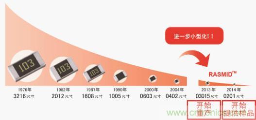 2011年,ROHM開發出低于被稱為微細化界限的0402(0.4mm×0.2mm)尺寸的世界最小※貼片電阻器(0.3mm×0.15mm);2012年,又開發出世界最小※半導體---齊納二極管(0.4mm×0.2mm)。
