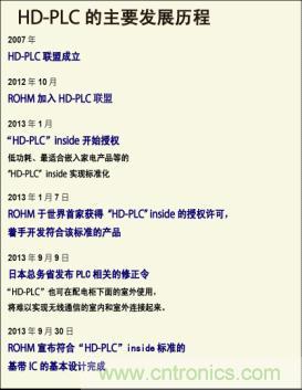 ROHM于2012年10月加入“HD-PLC”聯盟,并領先于全世界開始著手開發符合“HD-PLC” inside標準的基帶IC。