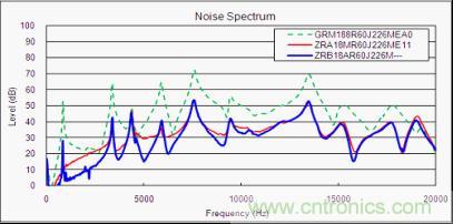 圖6:ZR*18(嘯叫抑制產品)和GRM18(通用產品)的嘯叫等級比較