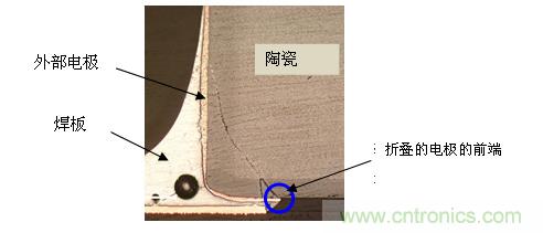 圖3:一般性的MLCC的電路板偏轉應力(橫截面照片)