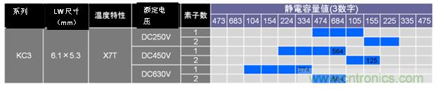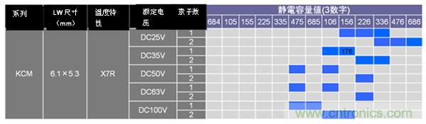 GCJ系列、KCM/KC3系列的125°C對應產品一覽如圖13、圖14、圖15所示。