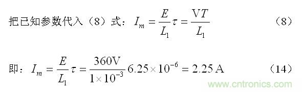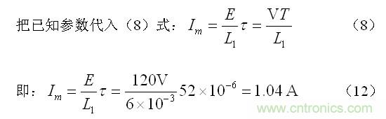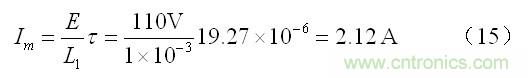 = 19.27uS ,由此可以求得流過(guò)開(kāi)關(guān)變壓器初級(jí)線圈的最大電流Im為: