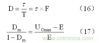 進(jìn)一步求占空比D和工作頻率。下面(16)式和(17)式是計(jì)算脈沖寬度