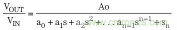 巴特沃茲濾波器傳輸函數包括所有極點,并且沒有零,其表達式如下: