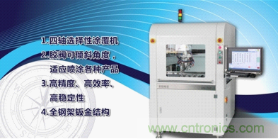 圣銘精密機械有限公司一直致力于自主產品的研發,目前已經自主研發了全自動選擇性涂覆機,全自動 LED 芯片分光分揀機,全自動 LED 插件機,全自動 PCB分板機等產品。在本次NEPCON展會中,深圳市圣銘精密機械有限公司將展示國內首創的全自動一體涂覆機,可實現一臺機器正反面噴涂,具備生產效率大幅提高,節省空間等特點,同時,全自動涂覆機與高速點膠機的展出代表著深圳市圣銘精密機械有限公司的研發實力與明顯提高的產品生產力,值得一看。