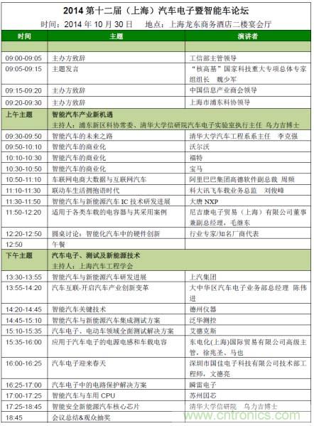 【導讀】我愛方案網(wǎng) (www.52solution.com)、電子元件技術網(wǎng) (www.jinyixuan88.cn) 攜手中國電子展、清華大學、上海市浦東新區(qū)科學技術協(xié)會、上海市汽車工程學會順應時勢,將在2014年10月30日共同主辦第十二屆(上海)汽車電子暨智能車論壇。