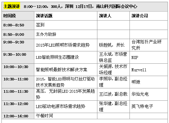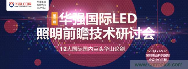 《第三屆華強國際LED照明前瞻技術(shù)研討會》將于2014年12月17日(周三)在廣東省深圳市科技園科興國際會議中心3樓舉行,屆時臺灣拓?fù)洚a(chǎn)業(yè)研究所所長楊勝帆、NXP市場營銷總監(jiān)王永斌、Marvell技術(shù)市場經(jīng)理關(guān)振源、明微電子副總經(jīng)理李照華、昂寶副總裁高維、昂帕董事長桑鈞晟博士、英飛特電子副總經(jīng)理張華建、華燦光電副總裁王江波、聚元微電子總經(jīng)理韓興成、綠寶石技術(shù)總監(jiān)伍松、中昊光電總經(jīng)理王孟源、華燦光電副總裁王江波、清華大學(xué)副研究員錢可元將親自前來與您共同探討2015年LED照明市場的新需求、新變化和新趨勢,精彩就在眼前,期待您也能撥冗前來共襄這一LED照明行業(yè)全明星盛會。