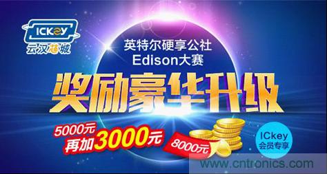 英特爾Edison設計大賽是一個尋找國內新生創(chuàng)客的舞臺。ICkey(云漢芯城)此次應邀加盟英特爾Edison設計大賽,將為大賽全國30強選手每人提供價值5000元的電子元器件及開發(fā)板等產品的資源贊助。(如果你是ICkey社區(qū)會員并進入大賽全國30強,更有機會贏得最高價值8000元的資源贊助獎勵!詳情請見http://bbs.ickey.cn/group-topic-id-43691.html)