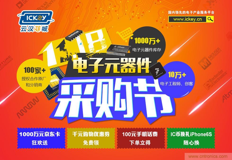 云漢芯城作為國內領先的電子產業(yè)服務平臺,致力于為行業(yè)提供透明高效的互聯網服務。2015年首次推出的云漢芯城電子元器件采購節(jié),是答謝用戶的年度鉅惠力作。活動期間,用戶在平臺下單,即可免費獲贈高額京東購物卡及100元話費獎勵;單個賬戶內將收到云漢芯城為每位用戶發(fā)放的千元優(yōu)惠套券;另外,用戶還能領取平臺數百種精美大禮,MINI COOPER、單反相機、MacBook、iPhone6s等時尚佳品等您拿下!