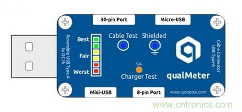 qualMeter能用于各種主流的USB充電線纜的測(cè)試,它還可以測(cè)試5V充電器的帶負(fù)載能力,從而大致確定其質(zhì)量。
