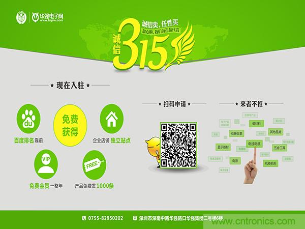 2016年兩會政府工作報告中強調大型制造業對物聯網越來越重視,相關的電子元器件、連接器的技術和產品需求將持續增長。華強電子網是全國電子元器件領域排名第一的垂直B2B網站。依賴政策紅利,響應號召,積極行動。在315國際消費者權益日全面推出免費贈送一年會員的福利。為深耕于電子產業前線的電子人送上實實在在的315大禮!