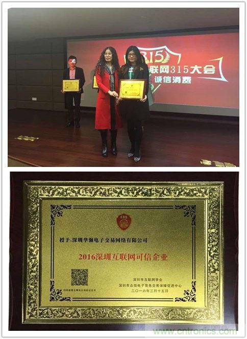 【導(dǎo)讀】“3.15”是國(guó)際消費(fèi)者權(quán)益日,當(dāng)天下午,2016深圳互聯(lián)網(wǎng)315大會(huì)在中國(guó)(深圳)新媒體廣告產(chǎn)業(yè)園舉辦。大會(huì)現(xiàn)場(chǎng)頒發(fā)了深圳“可信企業(yè)”驗(yàn)證3項(xiàng)大獎(jiǎng),深圳華強(qiáng)電子交易網(wǎng)絡(luò)有限公司獲獎(jiǎng),成為5家“2016深圳互聯(lián)網(wǎng)可信企業(yè)”之一。