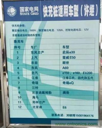 圖2.國家電網(wǎng)充電樁適用車型告示牌