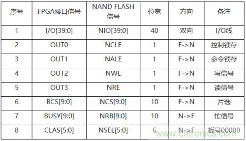 表2,40位NAND FLASH接口連接表