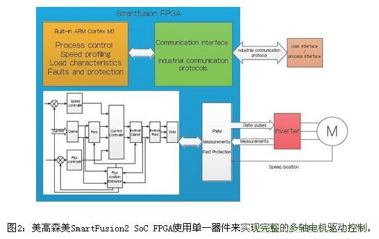 美高森美公司(Microsemi)提供具有硬核ARM Cortex-M3微控制器和IP集成的SmartFusion2 SoC FPGA器件,它采用成本優(yōu)化的封裝,具有減少BOM和電路板尺寸的特性。這些器件具有低功耗和寬溫度范圍,能夠在沒(méi)有冷卻風(fēng)扇的極端條件下可靠地運(yùn)行。 SmartFusion2 SoC FPGA架構(gòu)將一個(gè)硬核ARM Cortex-M3 IP與FPGA架構(gòu)相集成,可以實(shí)現(xiàn)更大的設(shè)計(jì)靈活性和更快的上市時(shí)間。美高森美為電機(jī)控制算法開(kāi)發(fā)提供了具有多個(gè)多軸電機(jī)控制參考設(shè)計(jì)和IP的生態(tài)系 統(tǒng),使由多處理器解決方案轉(zhuǎn)向單一器件解決方案(即SoC FPGA)更加容易。