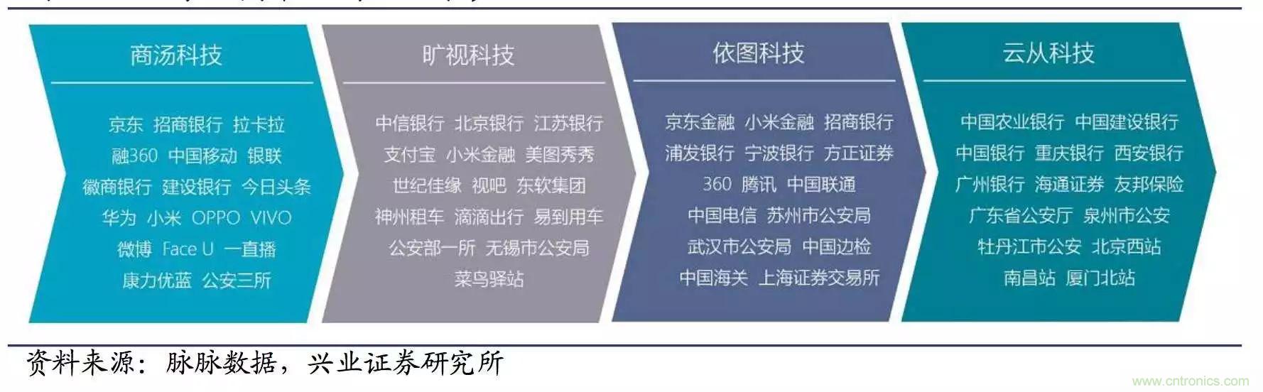 人臉識別在眾多領域遍地開花已經是大勢所趨,四家獨角獸公司在應用方面的布局也有所側重,他們各自憑借先進的技術,在各自擅長的領域進行深度布局,積累了豐富的客戶資源。商湯科技側重在金融、安防、移動互聯網和手機領域;依圖科技側重在金融、安防、醫療和交通領域;曠視科技側重在金融、安防、零售、出行等領域;云從科技側重在金融、安防、酒店,以及其他創新領域。