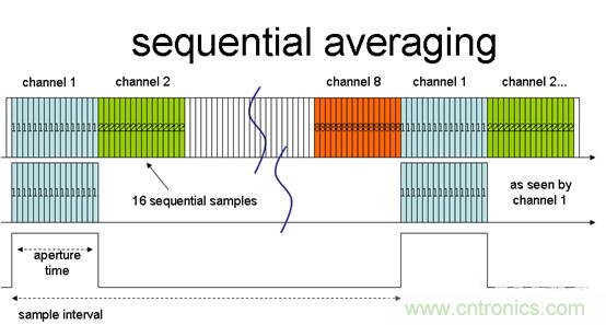 這種傳統(tǒng)的對單一通道信號進行多次轉(zhuǎn)換后才轉(zhuǎn)到下一個通道的平均模型被稱為序列平均。這種方法存在一些限制,主要問題在于會降低多通道環(huán)境中的可用采樣率,包括被平均的通道和序列中不需要平均的通道。