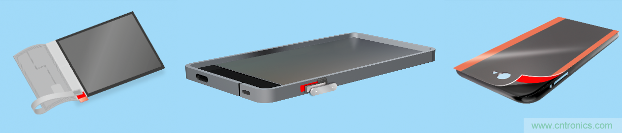 裝配過程中FPC的臨時應(yīng)用:包括彎折FPC運輸過程中的臨時固定、側(cè)鍵固定、機殼的臨時保護。