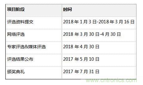 1、評(píng)選活動(dòng)于2018年1月3日啟動(dòng),2018年1月3日-2018年3月16日期間為企業(yè)報(bào)名、資料呈交時(shí)間;