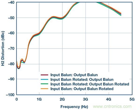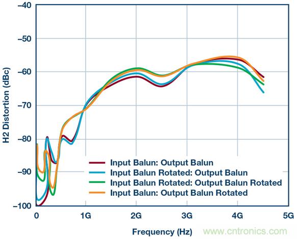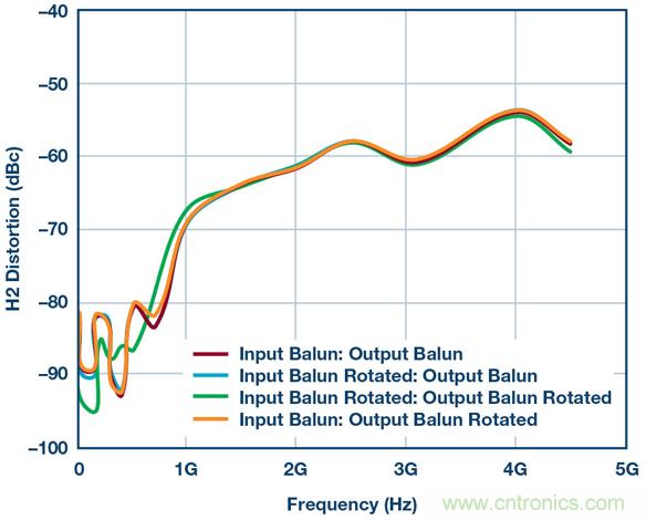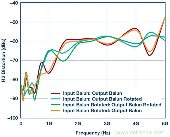 圖6.使用供應商1B巴倫和不同巴倫方向重新測試HD2性能。