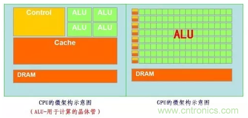 圖:CPU和GPU架構對比
