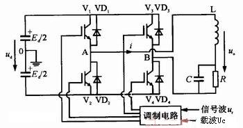 在電壓型逆變電路的PWM控制中,同一相上下兩個(gè)橋臂的驅(qū)動(dòng)信號(hào)都是互補(bǔ)的。但由于IGBT的截止時(shí)間約為200多納秒,導(dǎo)通時(shí)間約為100多納秒,開通速度比關(guān)斷速度快。如果在一個(gè)IGBT截止的同時(shí)讓此橋臂的另一個(gè)IGBT導(dǎo)通,將會(huì)出現(xiàn)上下兩個(gè)橋臂直通而短路的現(xiàn)象。為了防止發(fā)生這一現(xiàn)象,必須在開通和關(guān)斷信號(hào)之間設(shè)置一個(gè)死區(qū)時(shí)間,因而理想的調(diào)制信號(hào)和開關(guān)管輸出的實(shí)際信號(hào)之間存在偏差。死區(qū)時(shí)間的存在導(dǎo)致輸出電壓波形產(chǎn)生畸變,降低了基波幅值,增加了負(fù)載的諧波損耗。