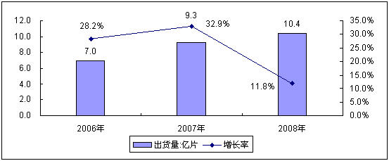 • 2008年,中國中小尺寸液晶面板共出貨10.4億片,同比增長11.8%