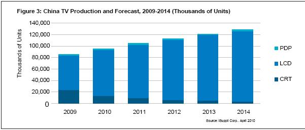 據(jù)iSuppli公司,中國電視市場已經(jīng)是全球舞臺上的主角,預(yù)計2010年再度有強勁表現(xiàn),整體電視產(chǎn)量上升,同時對于液晶電視的需求大增。