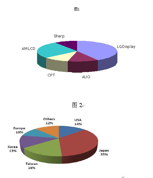 數(shù)據(jù)顯示,國(guó)內(nèi)所有的LED TV面板來(lái)源全部進(jìn)口,其中有部分open cell的模式,但是背光模組仍是采用指定購(gòu)買(mǎi)的方式。從中國(guó)大陸地區(qū)LED面板供應(yīng)來(lái)源來(lái)看,以2010年第一季度為例,主要供貨來(lái)源為L(zhǎng)G Display, AMLCD, AUO, CPT(如圖1),其中CPT供貨多數(shù)為小尺寸。而從全球LED面板產(chǎn)值來(lái)看,日本廠商目前為市場(chǎng)領(lǐng)導(dǎo)者,臺(tái)灣和韓國(guó)廠商積極擴(kuò)大產(chǎn)值(如圖2)。由此來(lái)看,LED TV面板產(chǎn)業(yè)市場(chǎng)集中度非常高,未來(lái)的LED TV市場(chǎng)的競(jìng)爭(zhēng)格局主要受限于廠商的資源分配情況。