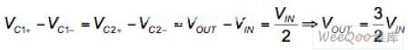 [page]輸出電容CHOLD提供輸出負(fù)載電流。隨著這個電容的放電,輸出電壓降低到期望的輸出電壓以下,第二個階段是被激活來將輸出電壓增高到這個值以上。在第二階段,C1和C2并聯(lián),連接在VIN和VOUT之間。開關(guān)S4到S7關(guān)閉,而S1到S3和S8打開。因?yàn)殡娙輧啥说碾妷航挡⒉荒芡蛔儯敵鲭妷禾兊捷斎腚妷褐档?.5倍︰