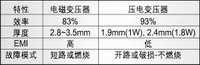 磁性變壓器和壓電變壓器的發(fā)展使我們可以構(gòu)造出高效、小體積轉(zhuǎn)換器。變壓器的選擇取決于多種因素,其中包括成本、體積和效率。例如,同PZT變壓器相比,在一個給定的功率水平,磁性變壓器可能更厚、更重且效率更低,但它具有成本低,而且可以在更寬的負載條件下工作的優(yōu)點。PZT變壓器具有固有的正弦運行特性、高激發(fā)電壓、不可燃和無電磁噪聲的優(yōu)點。磁性變壓器和壓電變壓器的比較見表1所示。