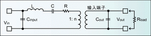 要預測PZT在系統(tǒng)中的性能,有必要建立它的電路模型。圖1所示的電路模型通常用于描述長模式PZT在基本諧振頻率附近的性能。許多PZT制造商都基于在各種頻率和輸出負載下的測量結(jié)果提供該模型的元件值,具體元件值取決于PZT的構(gòu)造。初級電極的多層結(jié)構(gòu)和材料電介質(zhì)常數(shù)形成了一個大的主級輸入電容(Cinput)。由于次級的單層結(jié)構(gòu)和主級電極和次級電極之間的距離,輸出電容要小很多。