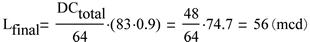 從上可見,運(yùn)用48的組合點(diǎn)校正值即可得到56mcd的期望亮度。請注意,由于溫度引起亮度下降,故本計算中的起始電流被設(shè)置為起始生產(chǎn)電流的90%。