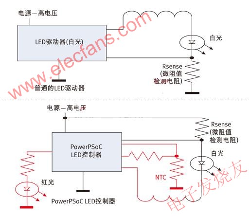 就改進操作、提高安全性而言,這兩種監控LED燈溫度的方法實施起來都很簡單直接。圖1是使用LED作為升溫源頭的這兩種方法的原理圖。