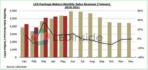 - 5月份,LED產(chǎn)業(yè)營收表現(xiàn)不如預期