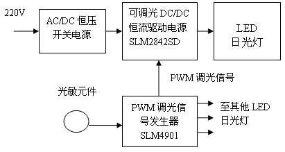 為了減小在強日光下不必要的照明,可以采用光敏自動調光LED日光燈(或任何其他LED燈具)。它的方框圖如圖11所示。