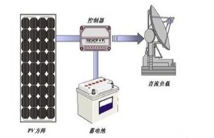圖2是一個典型的供應直流負載的光伏系統示意圖。其中包含了光伏系統中的幾個主要部件:光伏組件方陣:由太陽電池組件(也稱光伏電池組件)按照系統需求串、并聯而成,在太陽光照射下將太陽能轉換成電能輸出,它是太陽能光伏系統的核心部件。
