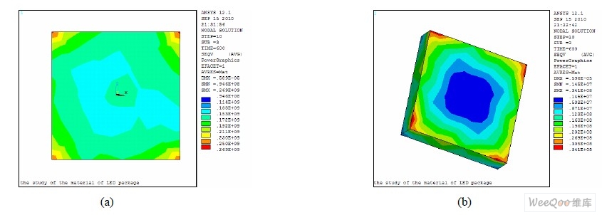 圖6 Lumileds 1 W LED 鍵合層(a)和芯片(b)的等效熱應(yīng)力分布