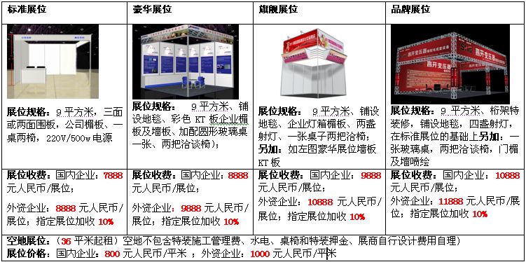 1、各種展位價(jià)格表