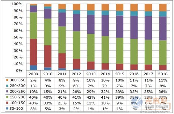 此外,由于智慧型手機(jī)的興起,手機(jī)將會是像素密度成長最明顯的應(yīng)用產(chǎn)品。在2012年,22%的手機(jī)面板(包含液晶面板和AMOLED主動矩陣有機(jī)發(fā)光二極體面板)將超過200PPI;估計(jì)2015年將達(dá)到50%市占率,2018年將超過55%市占率。