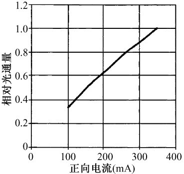 圖1 是LED 相對光通量和其正向電流IF 的關系圖。圖中可以看出LED 的光通量和其正向電流成正比的關系,因此可能通過控制LED 的正向電流來控制其發(fā)光亮度。LED 若采用恒壓源驅動,很小的電壓變化將引起很大的電流變化,因此恒壓驅動只適用于要求不高的小功率的場合下。在要求高的場合和大功率的場合下LED 都要采用恒流驅動。研究表明,LED 發(fā)光亮度隨工作時間下降,亮度下降后光效隨電流的增加而減少,LED 的亮度與驅動電流成飽和關系。LED 的電流達到其額定電流的70% ~80% 后,很大比例的電流轉化成了熱能,因此LED的驅動電流宜為工作電流額定電流的70% ~80%。在恒壓驅動或PWM 調光中, 最大電流不宜超過最小電流的3 倍,否則的話沖擊電流會大大減少LED 的使用壽命[8].目前來說市場化單個LED的功率都不大,大都在10W 以下,實際用于照明是把多個LED 按一定方或串并聯(lián)之后形成LED 陣列。