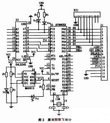 本設計的主要工作是通過檢測裝置對方位鎖定機構單獨供電,通過單片機89C52實現對光電開關輸出(上)、(下)信號的自主檢測,并控制電機雙向轉動,實現對方位鎖定機構的各項功能檢測。檢測調試儀具體設計設計方案如下:1)處理器采用89C52單片機,實現自主采集方位鎖定機構的狀態信號,如加解鎖到位信號等,并通過程序判斷機構狀態,控制電機工作狀態;2)由于程序執行會有一些時延,為防止機構加鎖到位或解鎖到位時由于單片機未能及時切斷控制信號而導致硬件損傷,故設計中要有硬件保護電路;3)設計中要保證電路有足夠驅動能力,采用SN54LS245作為驅動;4)檢測儀工裝中要有測試端口和各類指示燈,如電源,復位,加解鎖到位燈等,以及復位等按鈕;5)電源轉換模塊,實現28 V轉5 V,為單片機等供電;6)具有完備的檢測程序,能夠對鎖定機構進行完整檢測。